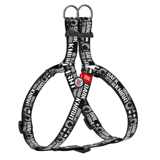 Шлея Waudog Nylon для собак, с QR паспортом, рисунок Темный рыцарь, серый, 25 мм, 60-90 см