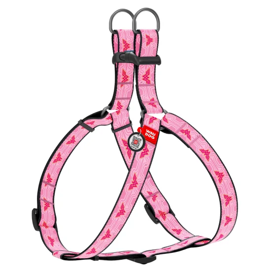 Шлейка Waudog Nylon для собак с QR-паспортом и принтом «Чудо-женщина 1» розового цвета — стильный и надёжный аксессуар для средних и крупных собак. Изготовлена из прочного и лёгкого нейлона, шлейка обеспечивает комфорт и надёжную фиксацию во время прогулок и активных игр.