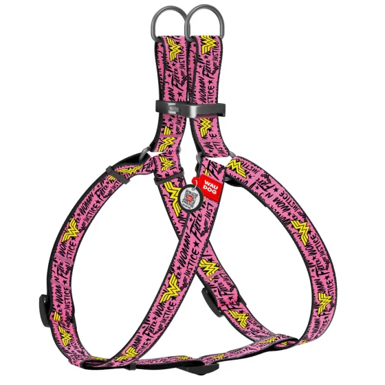 Шлея Waudog Nylon для собак, с QR паспортом, рисунок Чудо-женщина, розовый, 15 мм, 40-55 см