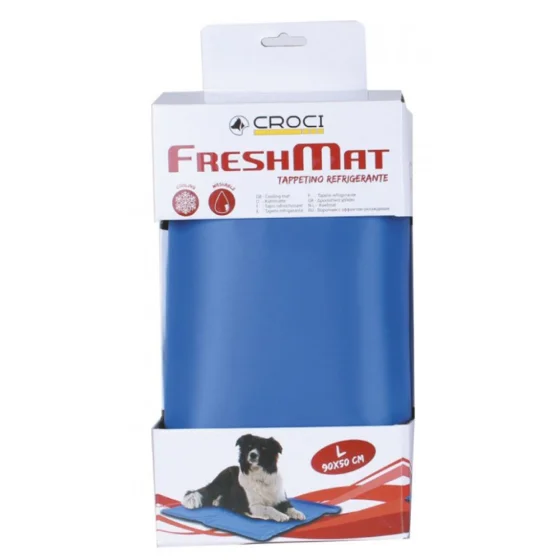 Croci FreshMat — охлаждающий коврик для собак, который помогает поддерживать комфортную температуру тела в жаркую погоду. Коврик легко использовать дома, на улице или в автомобиле. Его мягкая и прочная поверхность безопасна для питомца и удобна для отдыха.