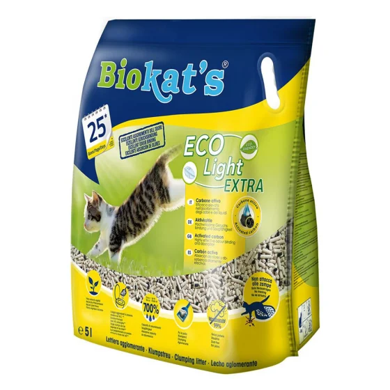 Наполнитель для кошачьего туалета Биокэтс Эко Лайт изготовлен из восстановленных материалов, с экологически чистой сои и натуральных растительных волокон.