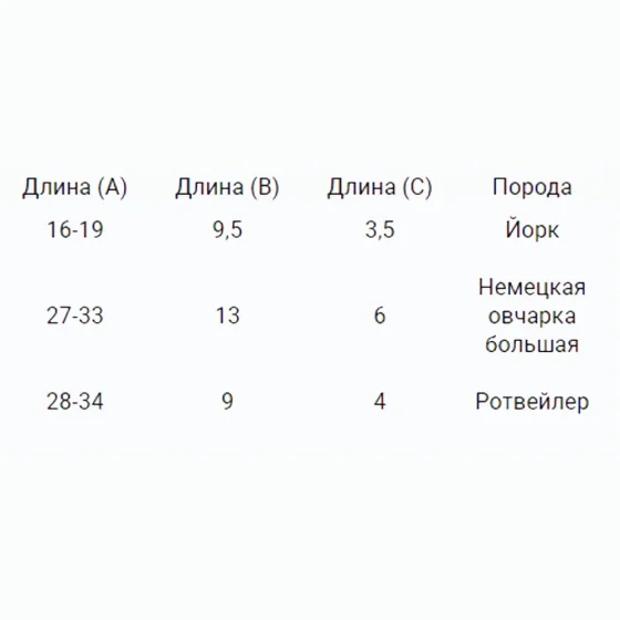 | Обхват морды | 28-34 см |