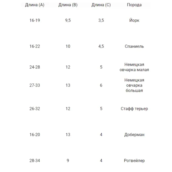 | Обхват морды | 16-19 см |