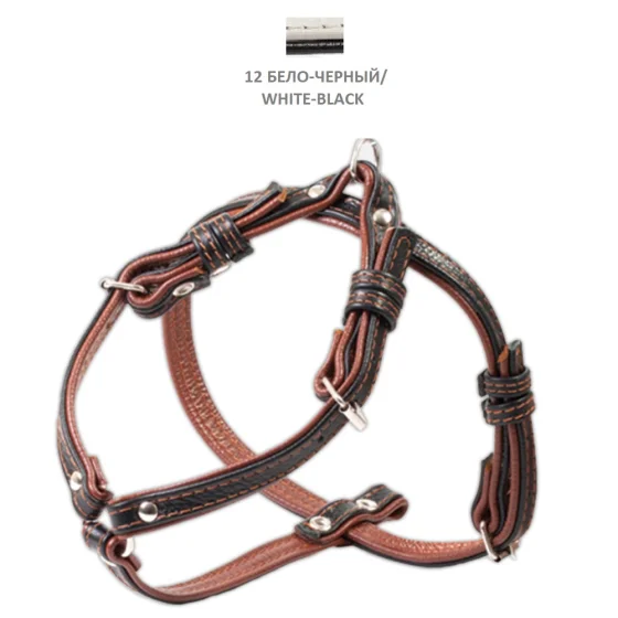 Шлейка Cristel для собак, четырёхслойная, кожа, 15мм / 34-44см / 42-52см, бело-чёрная