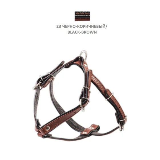 Шлейка Cristel для собак, четырёхслойная, кожа, 20мм / 32-48см / 46-56см, черно-коричневая