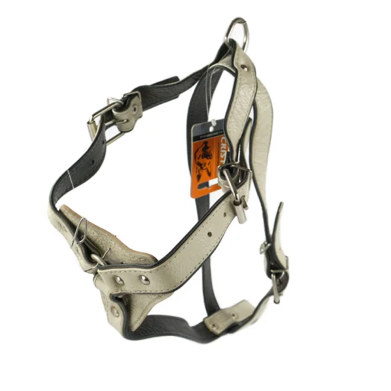 Шлейка Cristel для собак, четырёхслойная, кожа, 25мм / 40-56см / 56-65см, бело-чёрная