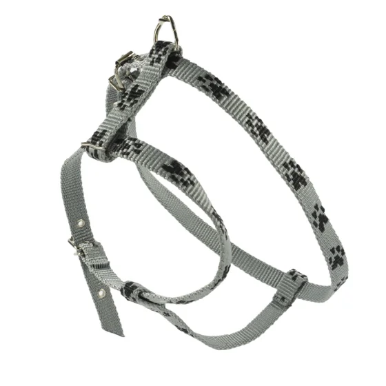 Шлейка Cristel для собак, нейлон, узор "чёрный след", 15 мм/24-34 см/45-55 см, серый