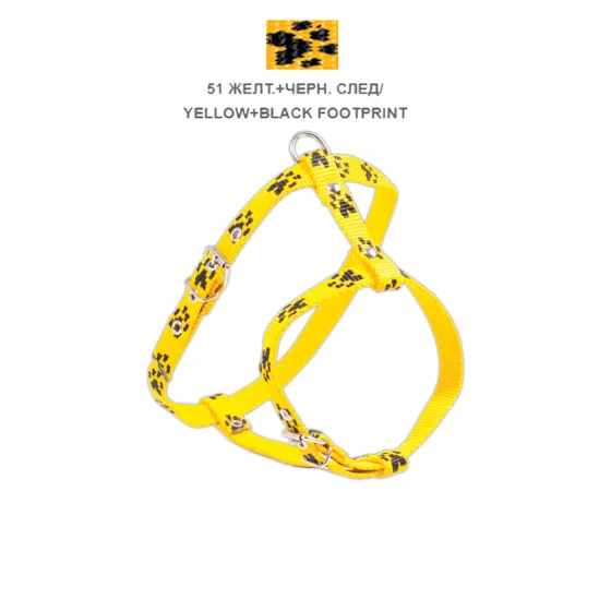 Шлейка Cristel для собак, нейлон, узор "чёрный след", 15 мм / 24-34 см / 45-55 см, жёлтый