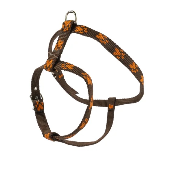 Шлейка Cristel для собак, нейлон, узор "оранжевый след", 15 мм / 24-34 см / 45-55 см, коричневый
