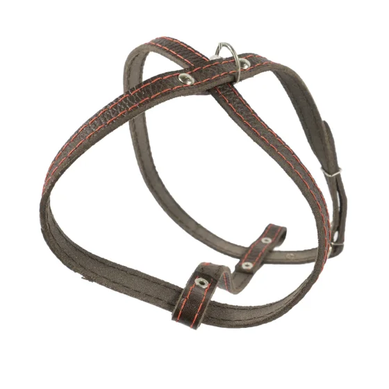 Шлейка Cristel для собак, кожа зенит, лакированная, прошитая, 12 мм / 32 см / 38-48 см, коричневый