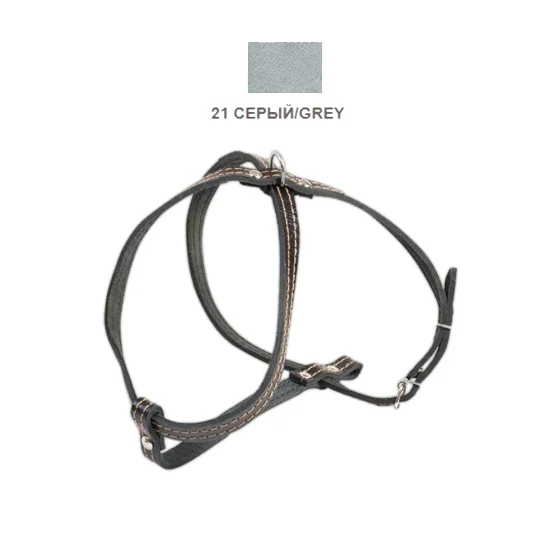 Шлейка Cristel для собак, кожаная, прошитая, 12 мм / 32 см / 38-48 см, серый