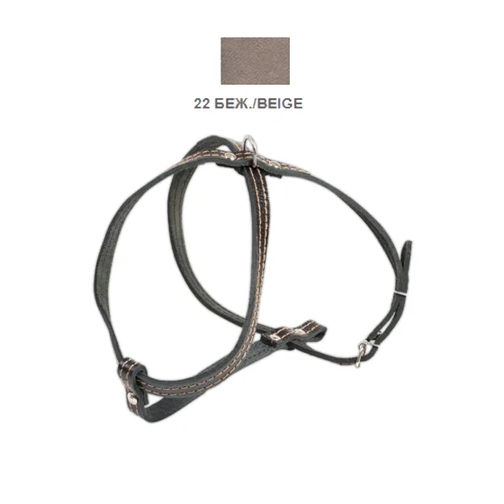 Шлейка Cristel для собак, кожаная, прошитая, 12 мм/32 см/38-48 см, бежевый