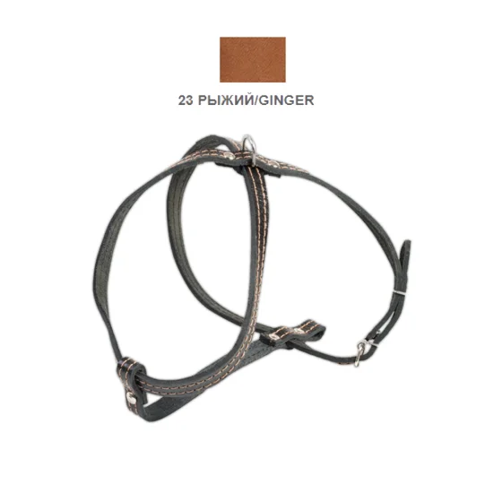 Шлейка Cristel для собак, кожаная, прошитая, 12 мм / 32 см / 38-48 см, рыжий