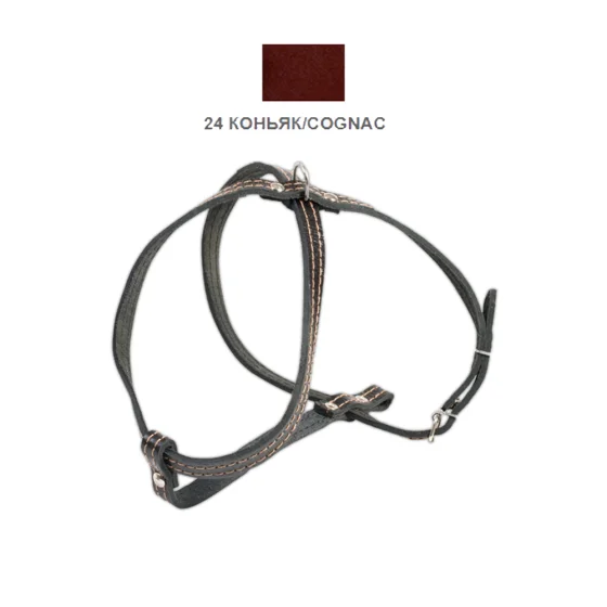Шлейка Cristel для собак, кожаная, прошитая, 12 мм/32 см/38-48 см, коньяк