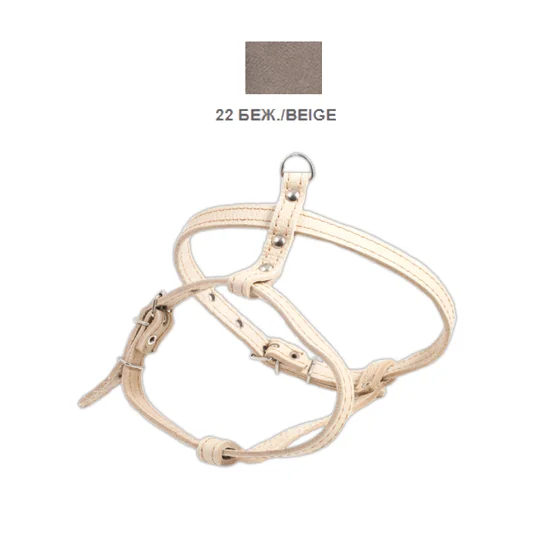 Шлейка Cristel для собак, кожаная, "пикинеса", 14 мм / 30-40 см / 38-48 см, бежевый