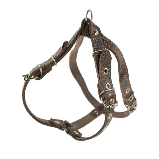 Шлейка Cristel для собак, лакированная кожа зенит, прошитая, с нагрудником, 16 мм / 32-48 см / 50-58 см, коричневый