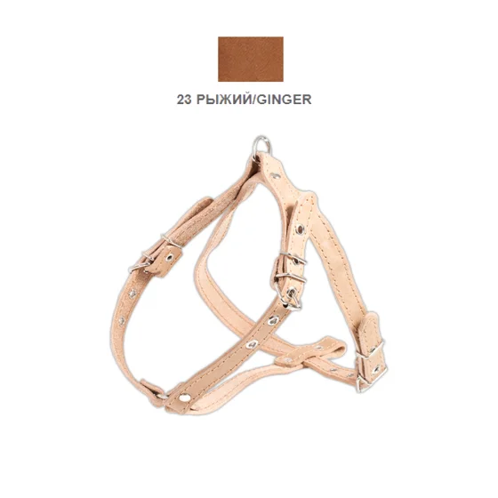 Шлейка Cristel для собак, кожаная, прошитая, с нагрудником, 16 мм/32-48 см/50-58 см, рыжий