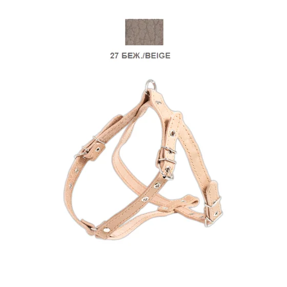 Шлейка Cristel для собак, кожа зенит, прошитая, с нагрудником, 16 мм/32-48 см/50-58 см, бежевый