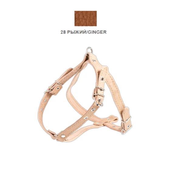 Шлейка Cristel для собак, кожа зенит, прошитая, с нагрудником, 16 мм / 32-48 см / 50-58 см, рыжий