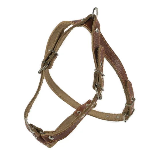 Шлейка Cristel для собак, кожа зенит, лакированная, прошитая, с нагрудником, 16 мм / 32-48 см / 50-58 см, коньяк