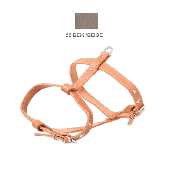 Шлейка Cristel для собак, кожаная, прошитая, 18 мм / 40-50 см / 50-60 см, бежевый