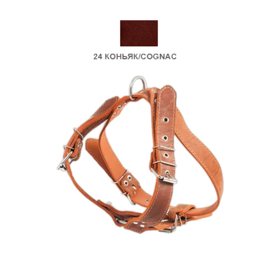 Шлейка Cristel для собак, кожаная, прошитая, с нагрудником, 30 мм/54-70 см/64-76 см, коньяк