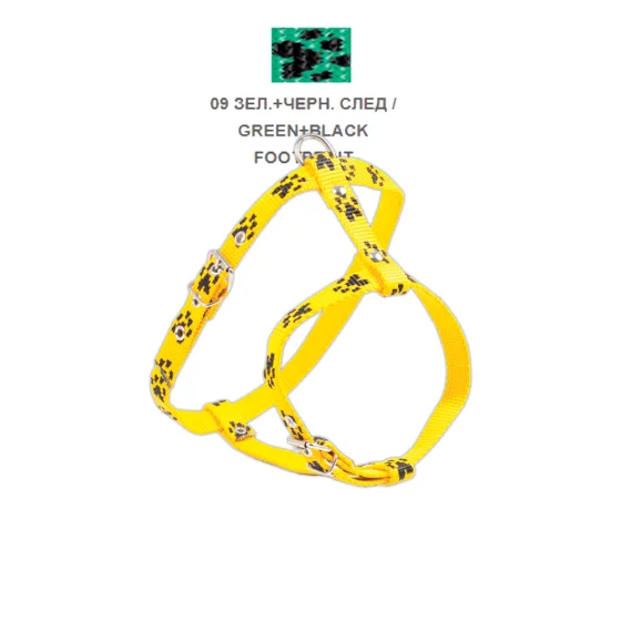 Шлейка Cristel для собак, нейлон, узор "чёрный след", 15 мм / 24-34 см / 45-55 см, зелёный