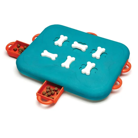 КАК ИГРАТЬ: когда косточки находятся в разблокированном положении, откройте выдвижные ящики и положите внутрь гранулы или лакомства. Закройте выдвижные ящики и заблокируйте косточки. Итак, начнем игру! Поместите игру на полу и поощрите питомца к поиску лакомств. Собаки умнее, чем мы думаем. Иногда им достаточно лишь показать что-то. Чтобы разжечь интерес питомца к игре, оставьте не заблокированными несколько косточек и открытыми несколько выдвижных ящиков.