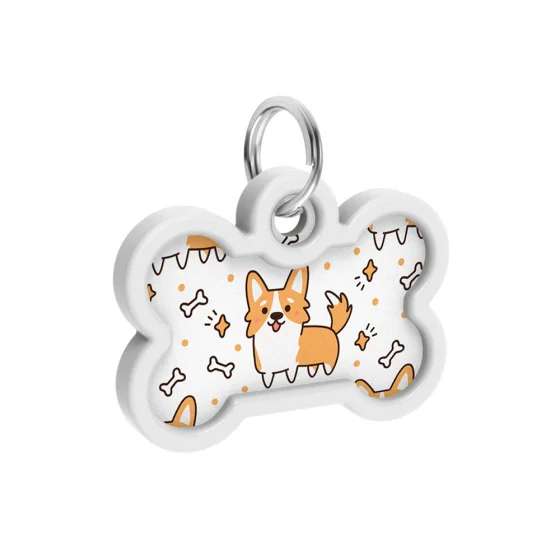Адресник WAUDOG Smart ID c QR паспортом для собак и котов, металлический, рисунок "Корги", кость, 40×28 мм