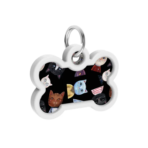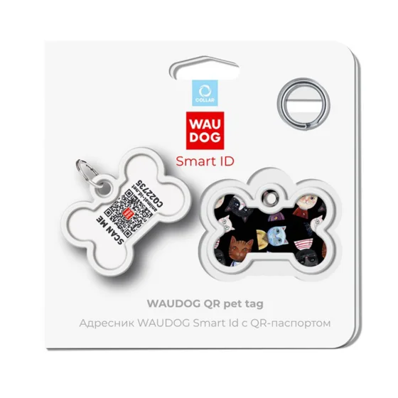 Адресник WAUDOG Smart ID c QR паспортом для собак и котов, металлический, рисунок "Коты", кость, 40×28 мм