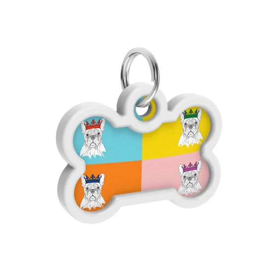 Адресник WAUDOG Smart ID c QR паспортом для собак и котов, металл, "Французский бульдог", кость, 40×28 мм