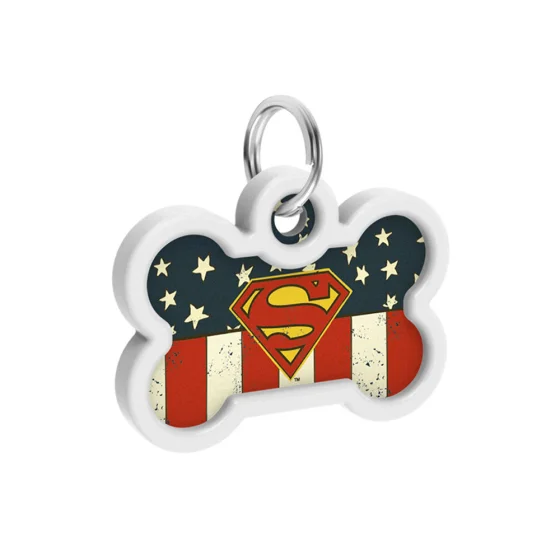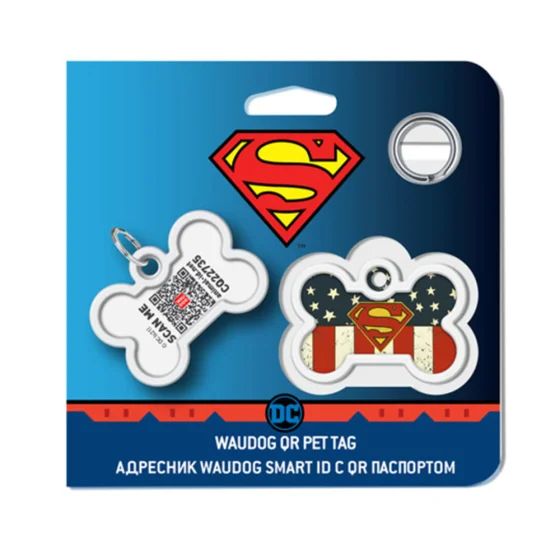 Адресник WAUDOG Smart ID c QR паспортом для собак и котов, металл, рисунок "Супермен Америка", кость, 40×28 мм