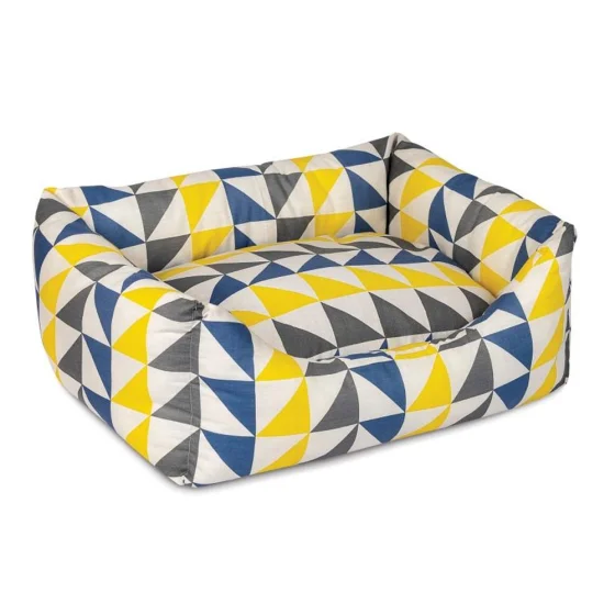 Практический просторный лежак с мягкими бортиками изготовлен из плотной бязи и полиэстера, поэтому хорошо стирается и чистится. Подушка на дне лежака съемная, при необходимости ее можно перевернуть другой стороной.