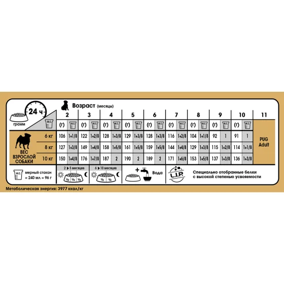 | Возраст | Вес взрослой собаки 6 кг | Вес взрослой собаки 8 кг | Вес взрослой собаки 10 кг |