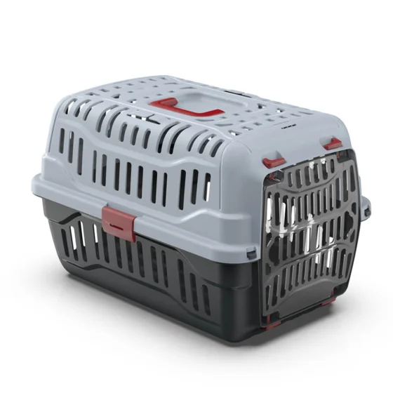 Переноска Georplast Spark для кошек и собак, серо-чёрная с красными креплениями, 48.5×33.5×31 см