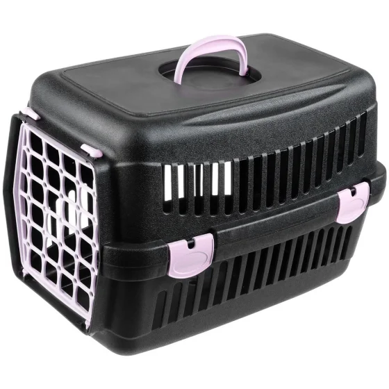 Переноска AnimAll для кошек и собак, чёрная с фиолетовой дверью, 48.5×32.5×32.5 см