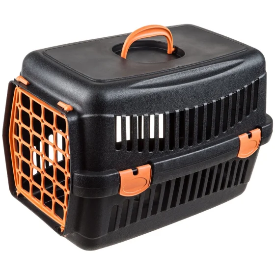 Переноска AnimAll для кошек и собак, чёрная с оранжевой дверью, 48.5×32.5×32.5 см