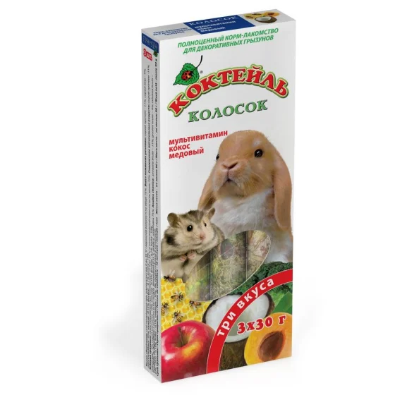 Лакомство Природа Коктейль Колосок для грызунов, мультивитамин, кокос, мёд, 90 г