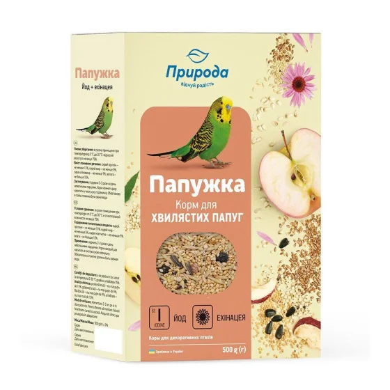 Корм Природа Папужка Йод и Эхинацея для волнистых попугаев, 500 г