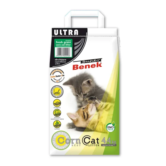 Super Benek Ultra Corn - это наполнитель, который имеет ультра мелкие гранулы высокой плотности. Отлично связывает неприятный запах и мочу, не пылит, не травмирует кошачьи лапы, очень эффективен.