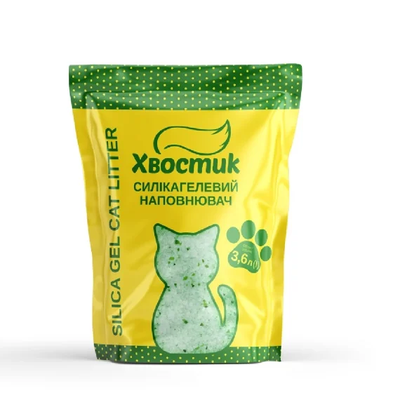 Силикагель наполнитель Хвостик для кошек, с зелеными гранулами, мелкая фракция, 3.6 л