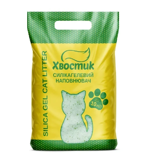 Силикагель наполнитель Хвостик для кошек, с зелеными гранулами, мелкая фракция, 10 л