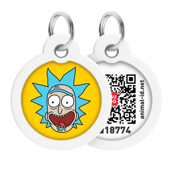 Адресник Ваудог Smart ID c QR-паспортом для собак и котов, металл, рисунок "Рик и Морти 3", круг, 30 мм