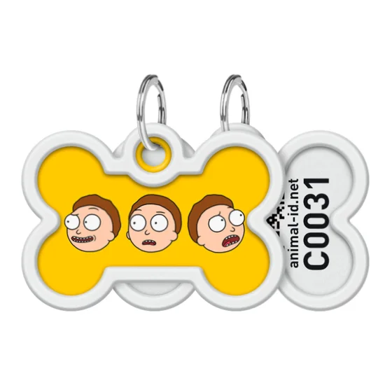 Адресник Ваудог Smart ID c QR-паспортом для собак и котов, металл, рисунок "Рик и Морти 2", кость, 40×28 мм