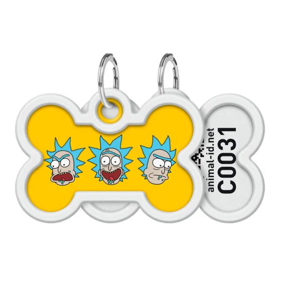 Адресник Ваудог Smart ID c QR-паспортом для собак и котов, металл, рисунок "Рик и Морти 3", кость, 40×28 мм