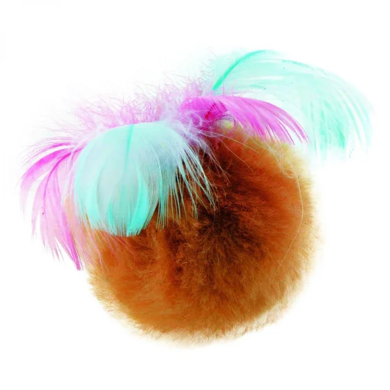 Игрушка Природа Мячик меховой с перьями, на резинке, для кошек, плюш, 5 см
