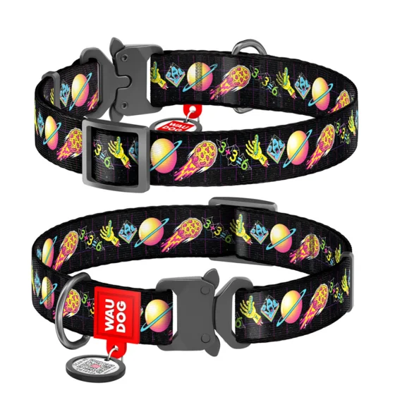 Ошейник Waudog Nylon c QR-паспортом для собак, рисунок "Рик и Морти 3", нейлон/металл, размер XL, 25 мм/35-58 см