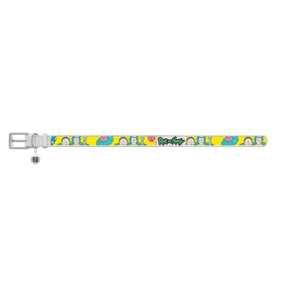 Ошейник Waudog Design с QR-паспортом для собак, кожаный, рисунок "Рик и Морти 1", XL, 35 мм/46-60 см, белый
