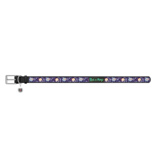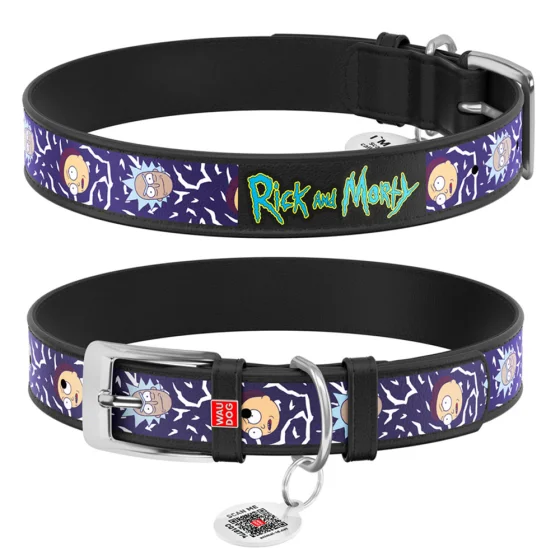 Ошейник Waudog Design с QR-паспортом для собак, кожаный, рисунок "Рик и Морти 2", S, 15 мм/27-36 см, чёрный