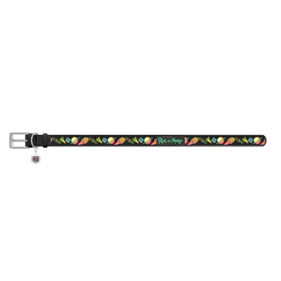 Ошейник Waudog Design с QR-паспортом для собак, кожаный, рисунок "Рик и Морти 3", L, 25 мм/38-49 см, чёрный
